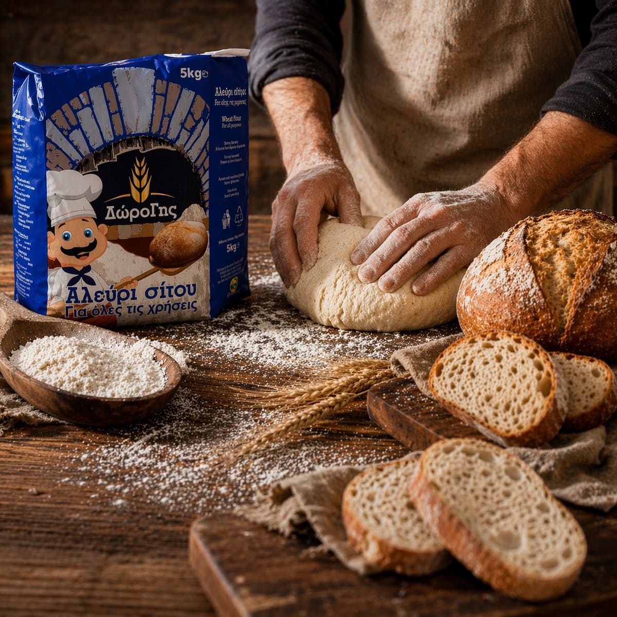 Απολαύστε τέλειο αποτέλεσμα σε κάθε συνταγή με το αλεύρι για όλες τις χρήσεις «Δώρο Γης» 5kg. Ιδανικό για ψωμί, πίτσες και γλυκά, με εύκολο ζύμωμα και σταθερή ποιότητα που κάνει τη διαφορά.